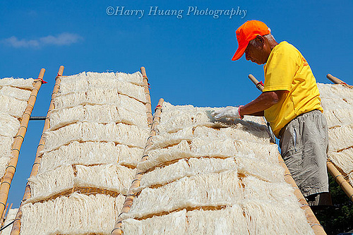 米粉這項(xiàng)食品的制作技術(shù),最早是由中國(guó)福建地區(qū)所傳入,新竹地區(qū)由于特殊的氣候環(huán)境(雨少、風(fēng)勢(shì)強(qiáng)),非常適合制造米粉,從此便成為臺(tái)灣的米粉重鎮(zhèn),成為新竹最具代表性的地方特產(chǎn)。