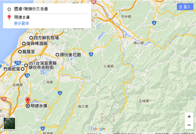 第一天: A.國道1號頭份交流道 7.2km B.四方鮮乳牧場 2.9km C.竹南啤酒廠 3.1km D.龍鳳宮 5.4km E.竹南蛇窯 10.3km F.頭份后花園 9.2km G.尖山米粉街 13.6km G.明德水庫(住宿頭屋或苗栗)