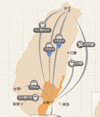 從臺(tái)北搭乘火車到臺(tái)東:臺(tái)北火車站←→臺(tái)東火車站4小時(shí)40分