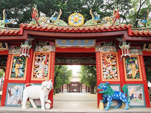 建于清同治年間,奉祀臺灣開山始祖鄭成功及其部將,為臺灣的重要古跡。占地9400余坪,庭園修筑風格莊嚴典雅,是臺灣少見的福州式廟宇建筑。