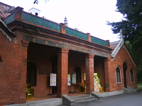 理學(xué)堂大書院,英文名字為「 Oxford College 」(牛津?qū)W堂) 。1872年到1880年間,馬偕博士以露天教學(xué)的方式,于路邊、榕樹下、溪邊或是海邊傳教,因感于創(chuàng)校之重要性,便于1880返回英國之際,籌募款項?;氐降蟊汩_始興建學(xué)校?!概=?qū)W堂」于1882年落成,是當(dāng)時教會培訓(xùn)傳教、醫(yī)療、教育等人員的基地。馬偕為了紀(jì)念英國人的支援,乃以其故鄉(xiāng)郡名「牛津」來命名,以示飲水思源之意。牛津?qū)W堂頗富中國傳統(tǒng)建筑色彩,采用均衡對稱,坐北朝南,同時屋脊立有八座小佛塔,以代替十字架。牛津?qū)W堂是當(dāng)時教會培訓(xùn)傳教、醫(yī)療、教育等人員的基地,目前已被列為二級古跡。