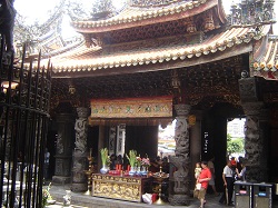 位于三峽街區中心的三峽祖師廟是安溪移民的信仰中心,草創于乾隆三十四年(1769年),三十六年祖師廟因年久而斑駁失修,乃推舉李梅樹教授為重建工程的美術設計及工程指導,融合不同流派的匠師與當代藝術家作品風格,因而贏得民間藝術殿堂、東方藝術殿堂的美譽。走入三峽祖師廟,立刻就會被它富麗堂皇、宗教藝術燦然齊備的殿堂所深深吸引。祖師廟安奉福建泉州安溪清水祖師,清水祖師又稱為祖師公、烏面祖師、落鼻祖師等,相傳是因為祂的神跡和法力的不同而有不同的稱呼,為相當普遍的民間信仰。祖師廟占地約500多坪,以古法建造為五門三殿式的廟宇形制,從前殿的石階開始算起,地面、墻壁、柱子,都為石造,正殿五門皆為銅制,廟宇內的龍柱、花鳥柱工藝繁復精巧,藝術成就極高。